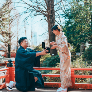This photo was taken in Nezu Shrine. The proposal was made even more surprising with a gigantic ring.